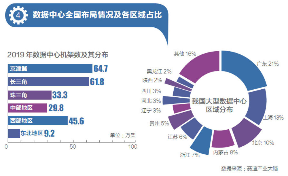 數(shù)據(jù)中心方面,國(guó)內(nèi)在運(yùn)營(yíng)的數(shù)據(jù)中心,主要集中在京津冀城市群、長(zhǎng)三角城市群、粵港澳大灣區(qū)等地區(qū),共占據(jù)整體市場(chǎng)50%以上的份額。(見(jiàn)圖4)