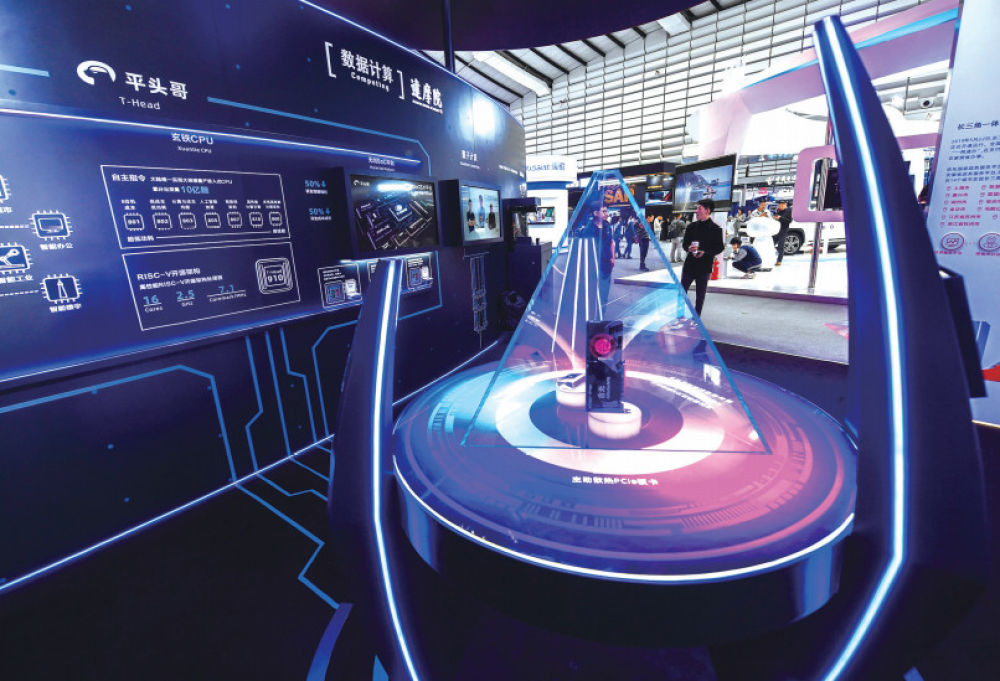 2019年10月18日,烏鎮(zhèn)互聯(lián)網(wǎng)之光博覽會(huì)現(xiàn)場(chǎng)展示的“含光”AI 芯片(徐昱/攝)