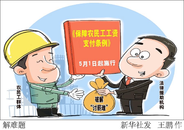 記者了解到,為配合《保障農(nóng)民工工資支付條例》的施行,司法部于近日印發(fā)通知,要求各級司法行政機(jī)關(guān)圍繞決勝全面建成小康社會、決戰(zhàn)脫貧攻堅大局,結(jié)合新冠肺炎疫情防控形勢,充分發(fā)揮法律援助等司法行政工作在根治拖欠農(nóng)民工工資中的作用,切實維護(hù)農(nóng)民工合法權(quán)益;同時,將農(nóng)民工作為今年法律援助重點服務(wù)對象提出具體工作要求。