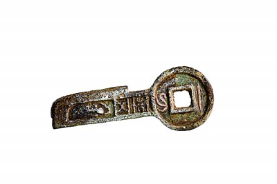 出土的新莽時(shí)期錯(cuò)金“一刀平五千”錢幣 資料圖片