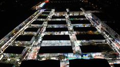 圖為6月3日拍攝的濟(jì)南環(huán)聯(lián)夜市(無人機(jī)照片)。? 新華社記者 王凱 攝