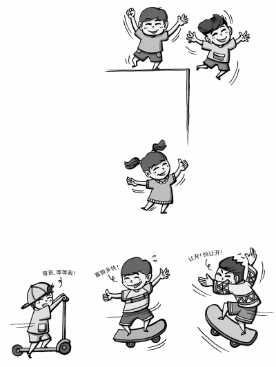 “可我說了沒用,這幫孩子天天交流,平衡車、滑板,回家就要?!蔽湎壬寡?,孩子們攀比的背后,是“能玩的太少”的現(xiàn)狀。尤其是今年開春后,不少家長都給孩子添置了自行車等設(shè)備。“人家給買你不買,孩子心里不舒服?!庇袝r(shí)拗不過孩子,自己只能就范。