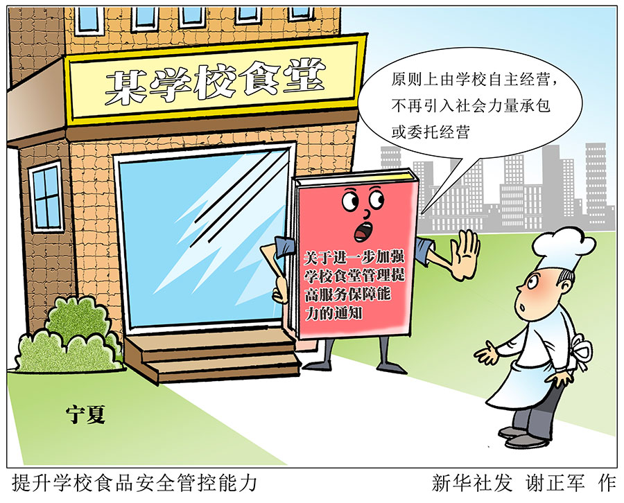 新華社銀川7月21日電(記者艾福梅)記者20日從寧夏回族自治區(qū)教育廳獲悉,自治區(qū)教育廳、發(fā)改委等六部門聯(lián)合發(fā)出《關(guān)于進一步加強學(xué)校食堂管理提高服務(wù)保障能力的通知》。通知明確,寧夏將規(guī)范食堂經(jīng)營模式,具備條件的幼兒園、普通中小學(xué)校、中等職業(yè)學(xué)校食堂原則上由學(xué)校自主經(jīng)營,不再引入社會力量承包或委托經(jīng)營,已經(jīng)承包或委托經(jīng)營的不再簽訂新的合同,以全面提升學(xué)校后勤服務(wù)保障和食品安全管控能力。
