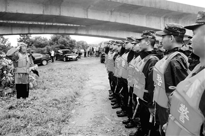 上海交通大學(xué)在讀大學(xué)生馬文斌曾在英模連隊(duì)“紅色尖刀連”服役。近日,從新聞中得知老部隊(duì)奔赴江西抗洪的消息后,他毅然向旅首長(zhǎng)遞交請(qǐng)戰(zhàn)書(shū)。得到批準(zhǔn)后,馬文斌(左一)從上海奔赴江西,和戰(zhàn)友們并肩作戰(zhàn)。劉 鵬攝
