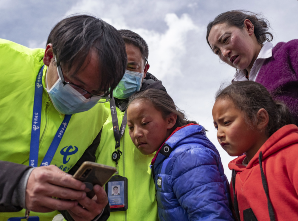 3月6日,中國電信集團拉薩分公司當(dāng)雄電信局的技術(shù)人員在烏瑪塘鄉(xiāng)巴嘎村幫助村民調(diào)試無線網(wǎng)絡(luò),方便偏遠(yuǎn)牧區(qū)學(xué)生上好網(wǎng)課(晉美多吉/攝)