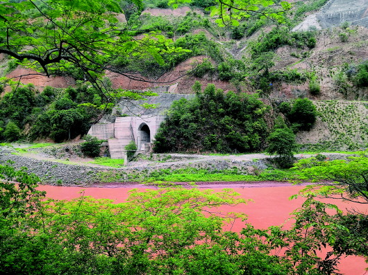 ▲8月7日,新平縣水塘鎮(zhèn)附近的戛灑江一級水電站導(dǎo)流洞,目前工程已停建3年。完顏文豪攝