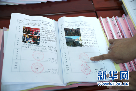 玉樹(shù)州基層干部學(xué)院李玉蘭院長(zhǎng)介紹學(xué)員考核手冊(cè)。新華網(wǎng)記者焦鵬攝