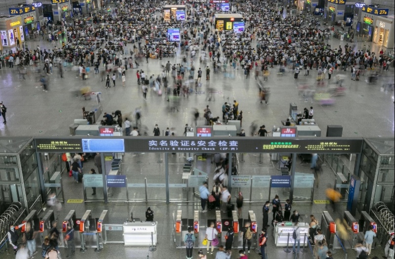 10月1日長(zhǎng)三角鐵路發(fā)送旅客309.9萬人次,預(yù)計(jì)2日發(fā)送旅客248萬人次,其中上海鐵路全站2日預(yù)計(jì)發(fā)送旅客45.5萬人次 圖源 新華社