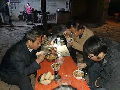 ▲尋找小組返回半山腰天色已黑,在農(nóng)戶家吃晚飯。新華社記者徐偉攝。