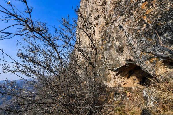 這次路程明顯縮短,但卻十分陡峭。有的路段,我們只能側(cè)著身子,石階僅容一只腳,兩只手只能扒著峭壁,而身后就是懸崖,有時(shí)需要雙腿跪著,慢慢挪動(dòng)身體。由于沒吃、沒喝,嘴唇干裂起皮,開口說話也有點(diǎn)吃力。這樣攀爬一個(gè)多小時(shí)后,一個(gè)山洞進(jìn)入我們的視野。
