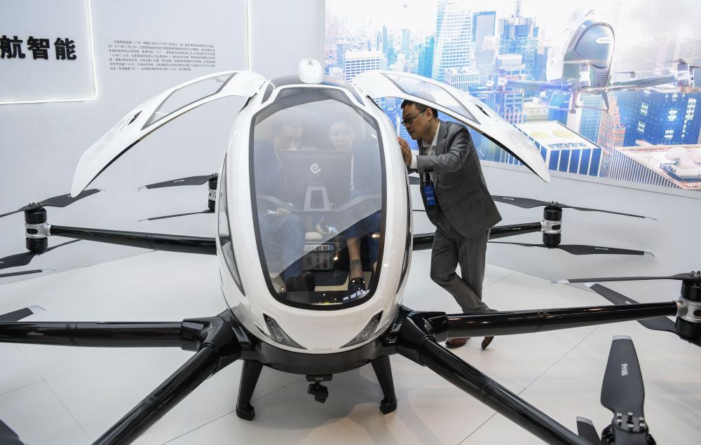 11月19日至21日,2020中國5G+工業(yè)互聯(lián)網(wǎng)大會(huì)在位于武漢的中國光谷科技會(huì)展中心舉行,大會(huì)特色活動(dòng)“5G+工業(yè)互聯(lián)網(wǎng)成果展”同步舉行。圖為11月19日,參觀者了解一臺(tái)自動(dòng)駕駛飛行器。新華社記者 程敏 攝