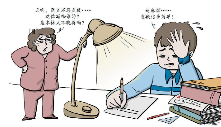 齊齊從小學一年級就開始練習毛筆字,如今已經(jīng)能寫出很不錯的行書,但他也從不寫信,“有必要嗎?”齊齊說,父母要求他每個月要給遠在老家的祖父母、外祖父母打電話,每次電話的通話時間也就兩三分鐘,“我爸他們也就是問奶奶吃飯了沒,多買點吃的,不舒服趕緊去醫(yī)院……就這幾句話,真沒營養(yǎng)。”