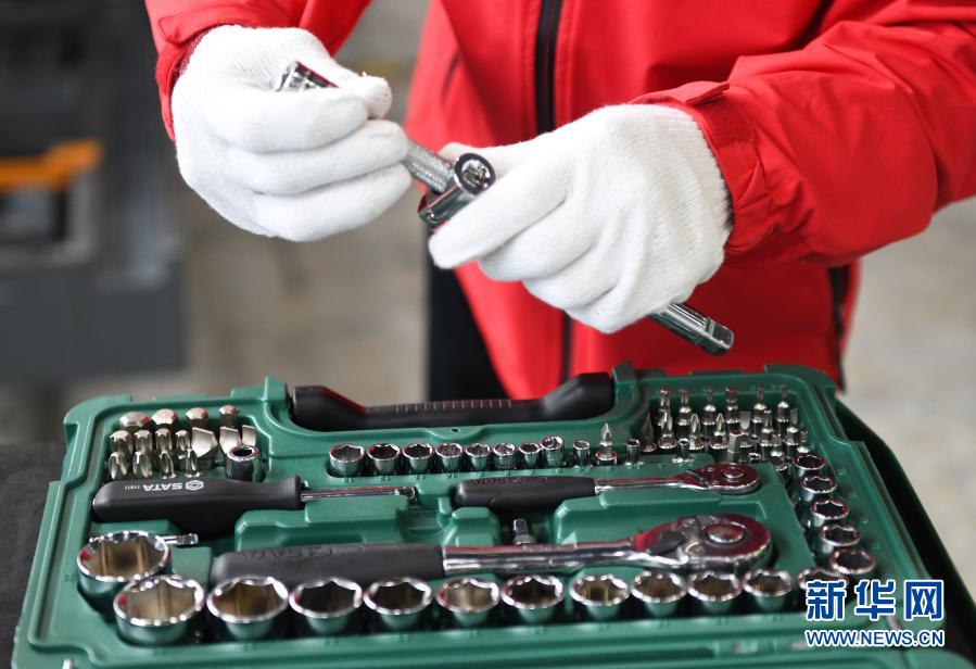 選手在汽車車身修理項(xiàng)目比賽中挑選工具(12月11日攝)。新華社記者 盧漢欣 攝