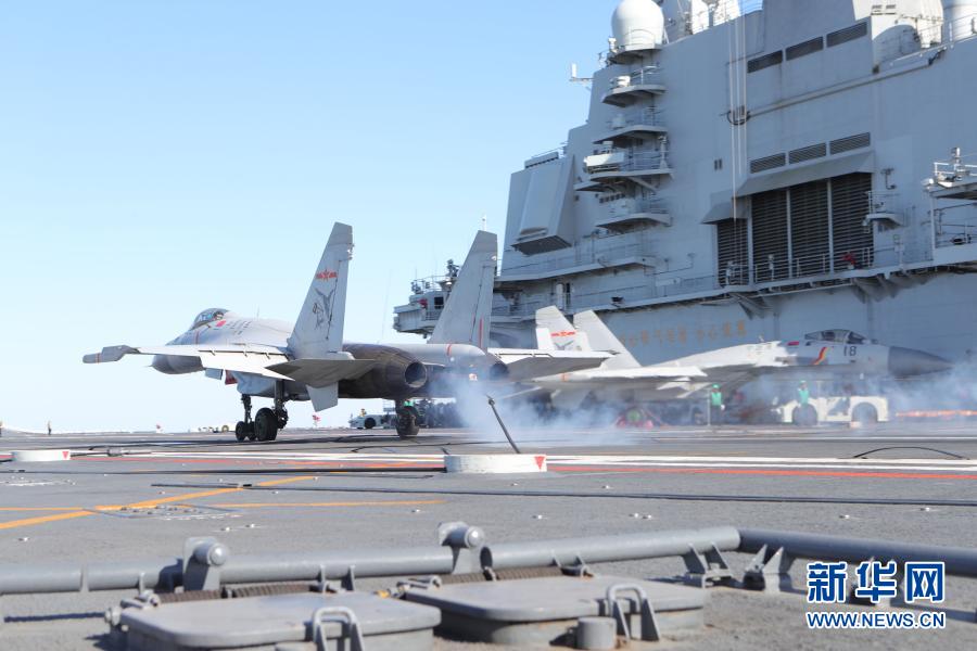 飛行學員駕駛殲-15艦載戰(zhàn)斗機在遼寧艦成功實施阻攔著艦(資料照片)。新華社發(fā)(楊皓 攝)