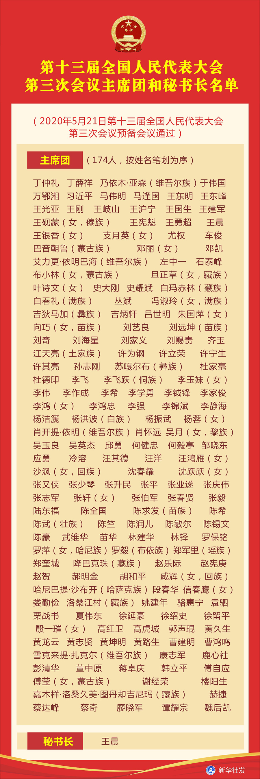 第十三屆全國(guó)人民代表大會(huì)第三次會(huì)議主席團(tuán)和秘書長(zhǎng)名單