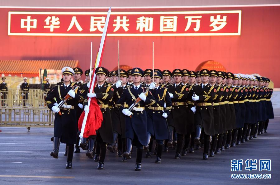 1月1日晨,北京天安門(mén)廣場(chǎng)舉行隆重的升國(guó)旗儀式。新華社記者 任超 攝