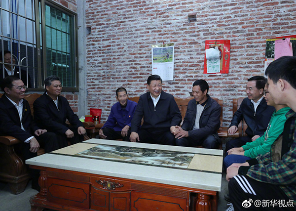 23日下午,習(xí)近平一行沿著崎嶇的山路乘車來到廣東省英德市連江口鎮(zhèn)連樟村,走進(jìn)村公共服務(wù)站、扶貧玩具加工廠車間和貧困戶家中,同村民們親切交談。他強(qiáng)調(diào),全面建成小康社會一個都不能少,在脫貧攻堅戰(zhàn)中,基層黨組織要發(fā)揮戰(zhàn)斗堡壘作用,一任接著一任抓,一仗接著一仗打,一代接著一代干,積小勝為大勝,最后取得全面勝利。要認(rèn)真抓好鄉(xiāng)村振興戰(zhàn)略,在脫貧致富基礎(chǔ)上加快推動鄉(xiāng)村全面振興,實現(xiàn)農(nóng)業(yè)農(nóng)村現(xiàn)代化。我們相信,我國廣大農(nóng)民生活一定能越來越幸福。(記者:張曉松、鞠鵬)