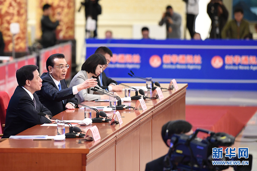 3月15日,國務(wù)院總理李克強在北京人民大會堂會見采訪十三屆全國人大二次會議的中外記者并答記者問。 新華社記者 殷博古 攝