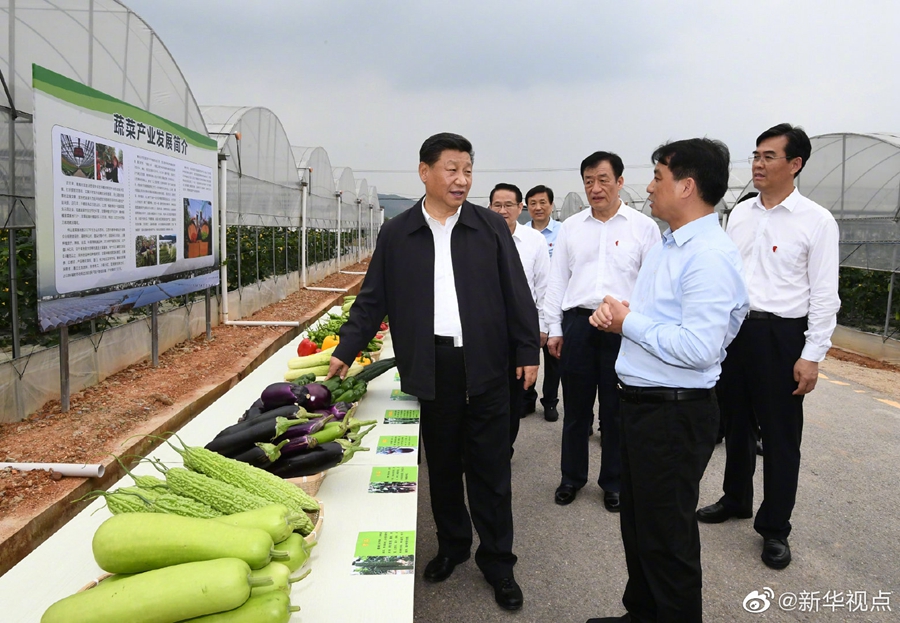 20日下午,習(xí)近平總書記來到江西省于都縣梓山富硒蔬菜產(chǎn)業(yè)園考察調(diào)研。產(chǎn)業(yè)園以“龍頭企業(yè)+合作社+農(nóng)戶和貧困戶”發(fā)展模式,帶動(dòng)了當(dāng)?shù)卮迕衩撠氈赂弧?吹娇倳泚砹?,正在大棚里勞作的鄉(xiāng)親們激動(dòng)地說:“感謝黨的好政策,讓我們過上了幸福生活!”習(xí)近平對(duì)鄉(xiāng)親們說:“共產(chǎn)黨就是為人民群眾謀幸福的,黨中央想的就是千方百計(jì)讓老百姓過上好日子。芝麻開花節(jié)節(jié)高,今后日子會(huì)更好!”(文字:張曉松 攝影:謝環(huán)馳、鞠鵬)