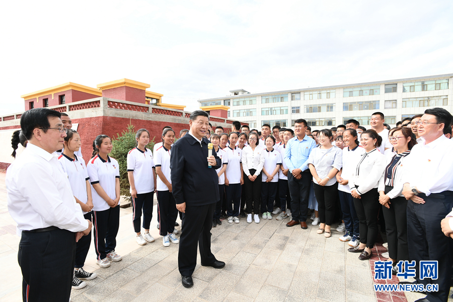 8月19日至22日,中共中央總書(shū)記、國(guó)家主席、中央軍委主席習(xí)近平在甘肅考察。這是20日下午,習(xí)近平在張掖市山丹培黎學(xué)校同師生親切交流。 新華社記者 謝環(huán)馳 攝