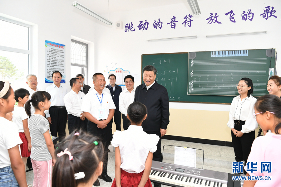 8月19日至22日,中共中央總書(shū)記、國(guó)家主席、中央軍委主席習(xí)近平在甘肅考察。這是21日上午,習(xí)近平在武威市古浪縣黃花灘生態(tài)移民區(qū)富民新村富民小學(xué)的音樂(lè)教室,認(rèn)真觀看正在進(jìn)行的音樂(lè)課教學(xué)。 新華社記者 謝環(huán)馳 攝