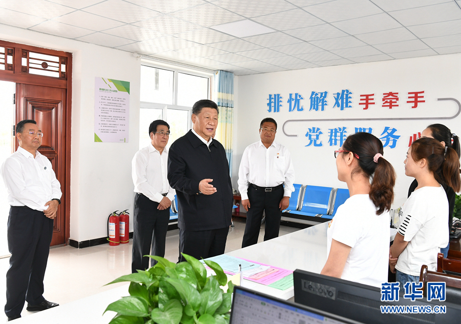 8月19日至22日,中共中央總書(shū)記、國(guó)家主席、中央軍委主席習(xí)近平在甘肅考察。這是21日上午,習(xí)近平在武威市古浪縣黃花灘生態(tài)移民區(qū)富民新村黨群服務(wù)中心考察。 新華社記者 謝環(huán)馳 攝
