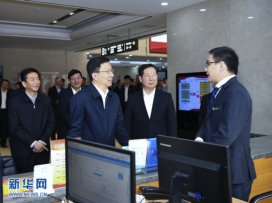 10月21日至22日,中共中央政治局常委、國務(wù)院副總理韓正在山西省調(diào)研。這是10月21日,韓正來到山西省政務(wù)服務(wù)中心,考察政府職能轉(zhuǎn)變和“放管服”改革推進情況。 新華社記者 燕雁 攝