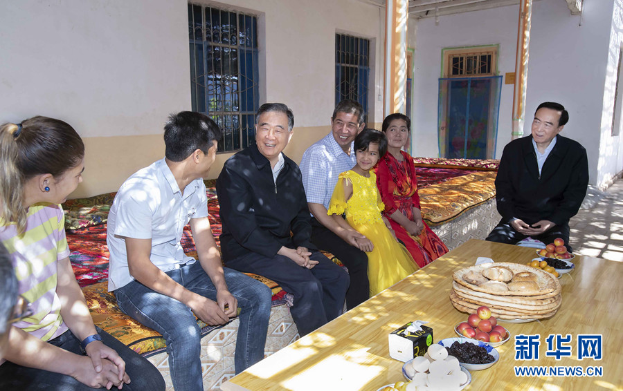 6月8日至12日,中共中央政治局常委、全國政協(xié)主席汪洋在新疆調研。這是6月11日,汪洋在喀什調研時與當?shù)卮迕裼H切交談。 新華社記者 李濤 攝