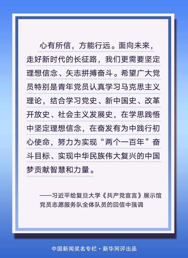習(xí)近平給復(fù)旦大學(xué)《共產(chǎn)黨宣言》展示館黨員志愿服務(wù)隊全體隊員的回信