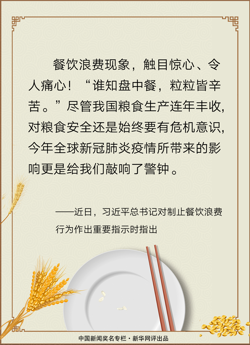 浪費(fèi)之風(fēng)務(wù)必狠剎!厲行勤儉節(jié)約,才能有效凈化社會(huì)風(fēng)氣,培育健康向上的文明風(fēng)尚,需要在思想觀念上來一次破舊立新的變革,樹立新的價(jià)值觀、生活觀和消費(fèi)觀。生活條件越是改善,就越不能丟了勤儉節(jié)約這個(gè)傳家寶。要加強(qiáng)立法,強(qiáng)化監(jiān)管,采取有效措施,建立長效機(jī)制,堅(jiān)決制止餐飲浪費(fèi)行為。要進(jìn)一步加強(qiáng)宣傳教育,大力弘揚(yáng)中華民族勤儉節(jié)約的優(yōu)秀傳統(tǒng),切實(shí)培養(yǎng)節(jié)約習(xí)慣,推動(dòng)形成綠色發(fā)展方式和生活方式,使厲行節(jié)約、反對浪費(fèi)在全社會(huì)蔚然成風(fēng)。