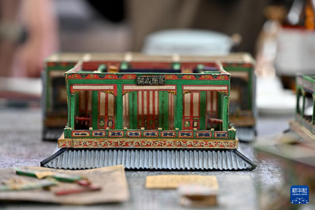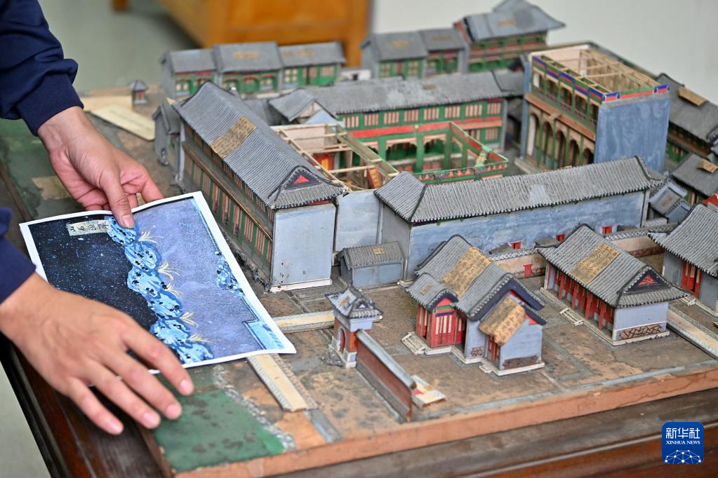 这是修复中的圆明园同乐园建筑群样式雷烫样文物部件(5月16日摄)。