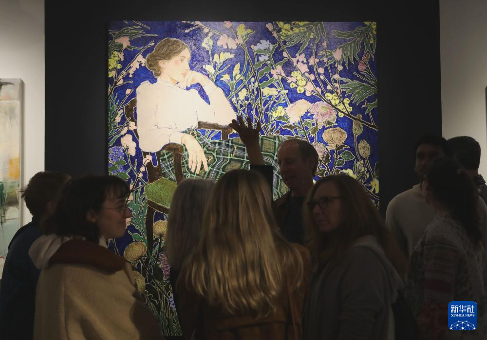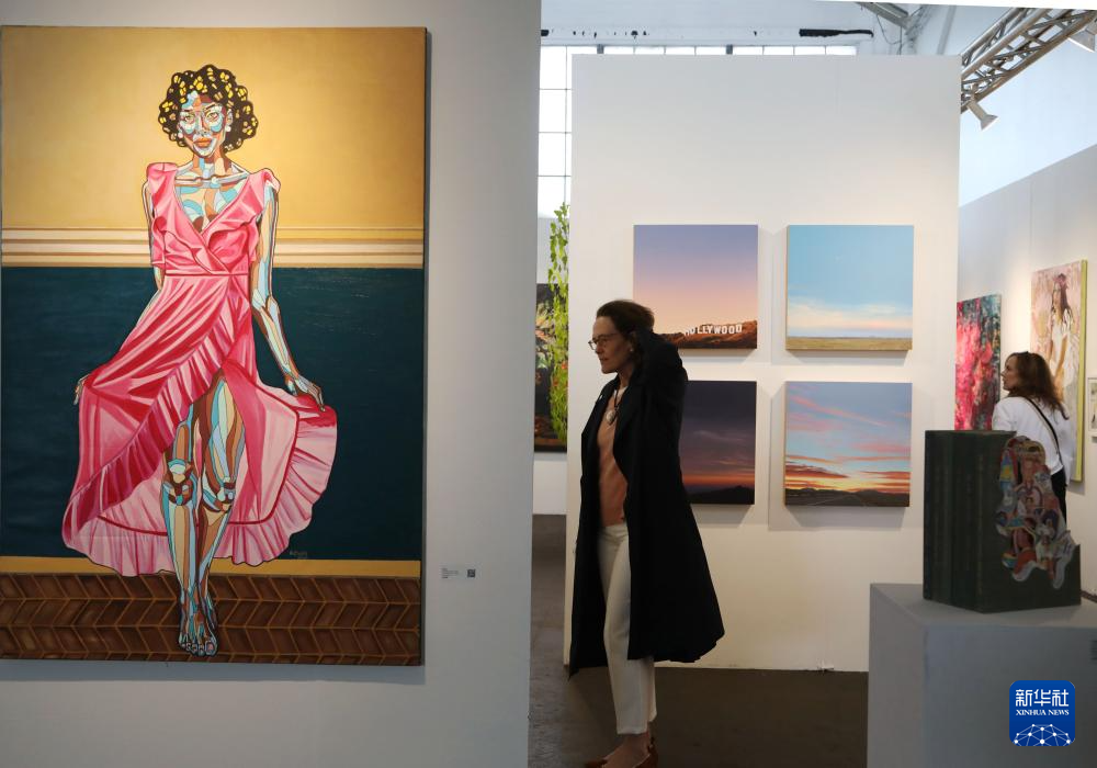 4月25日,在美国旧金山梅森堡中心举行的旧金山艺术博览会上,人们观看艺术作品。