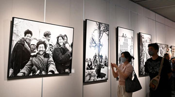 5月14日,游客在吐鲁番博物馆文物数字展示区参与互动。