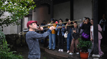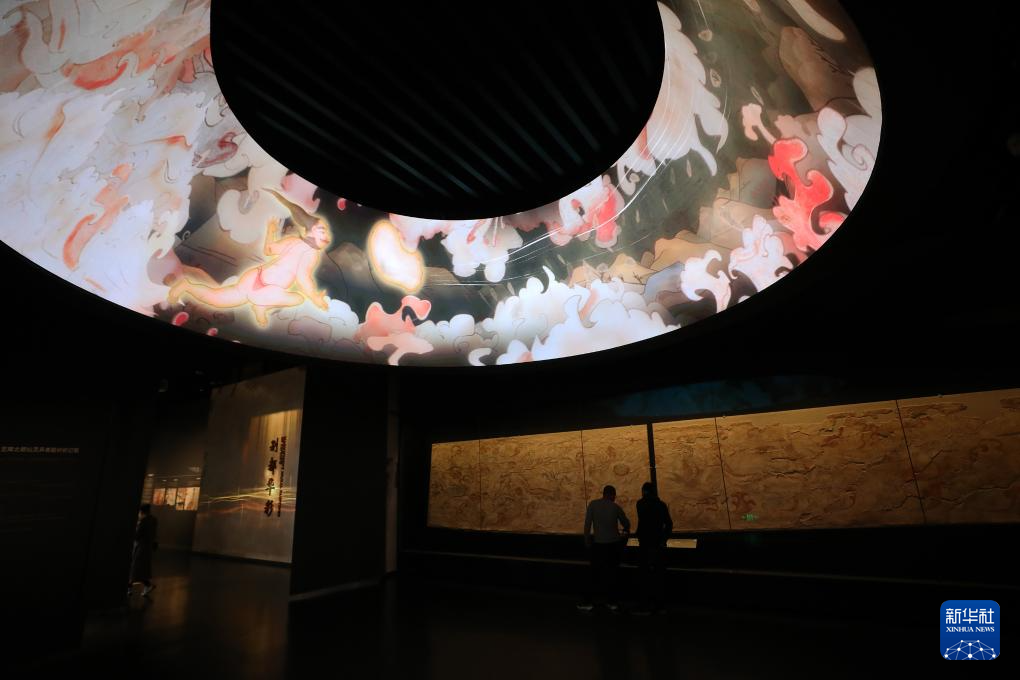10月29日,观众在太原北齐壁画博物馆体验互动项目。