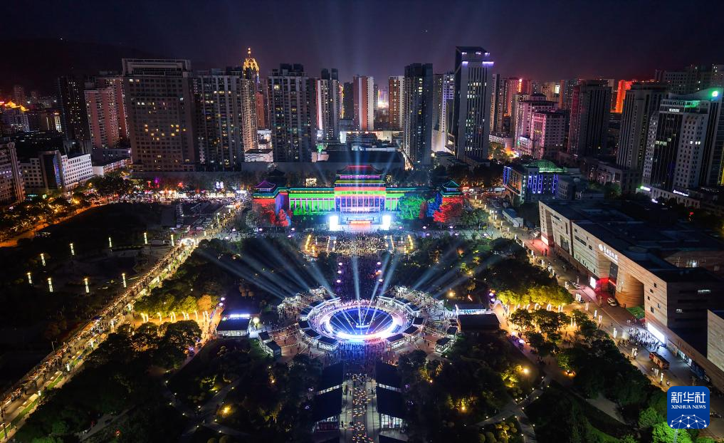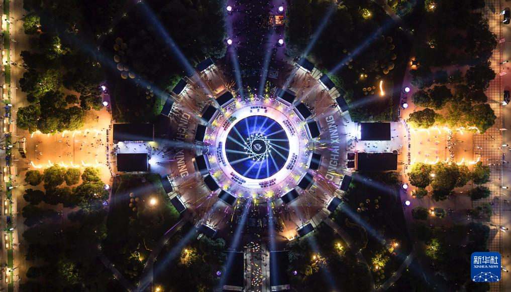 这是5月28日“西海2261·河湟文化大集”开集仪式的灯光秀表演(无人机照片)。