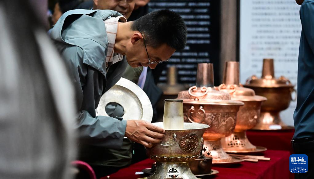 5月28日,在“西海2261·河湟文化大集”非遗展区,市民观看湟中银铜器。
