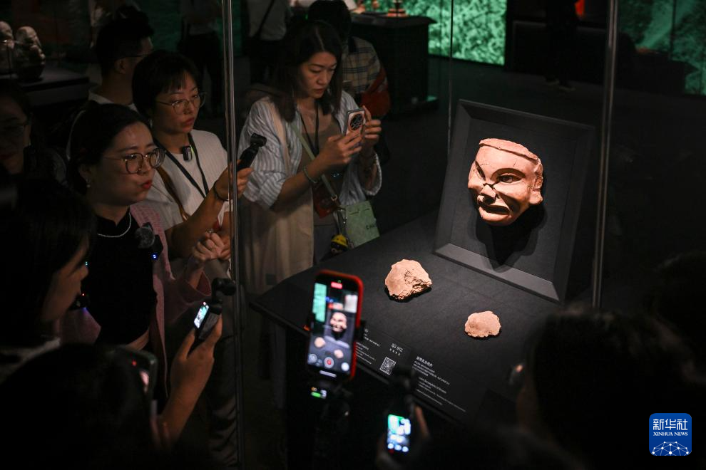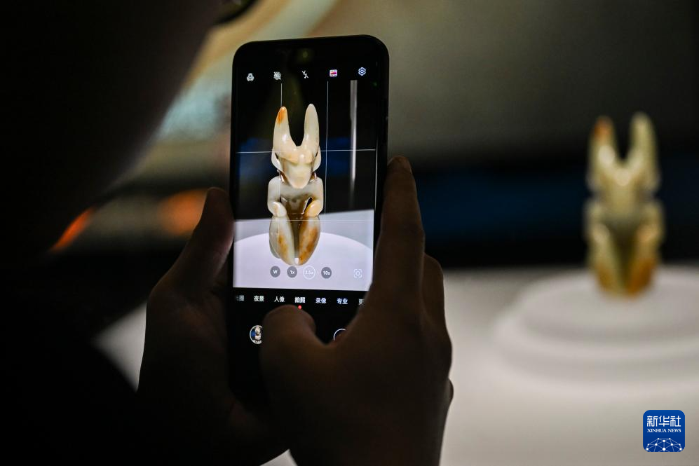 6月25日,媒体人员在拍摄展品女神像(复制品)。