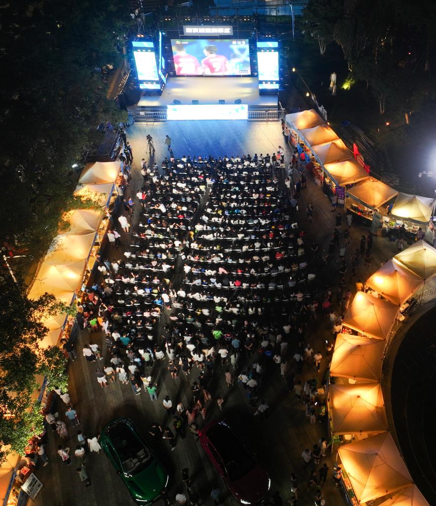 8月17日,南京球迷在“第二现场”观看比赛(无人机照片)。新华社记者 季春鹏 摄