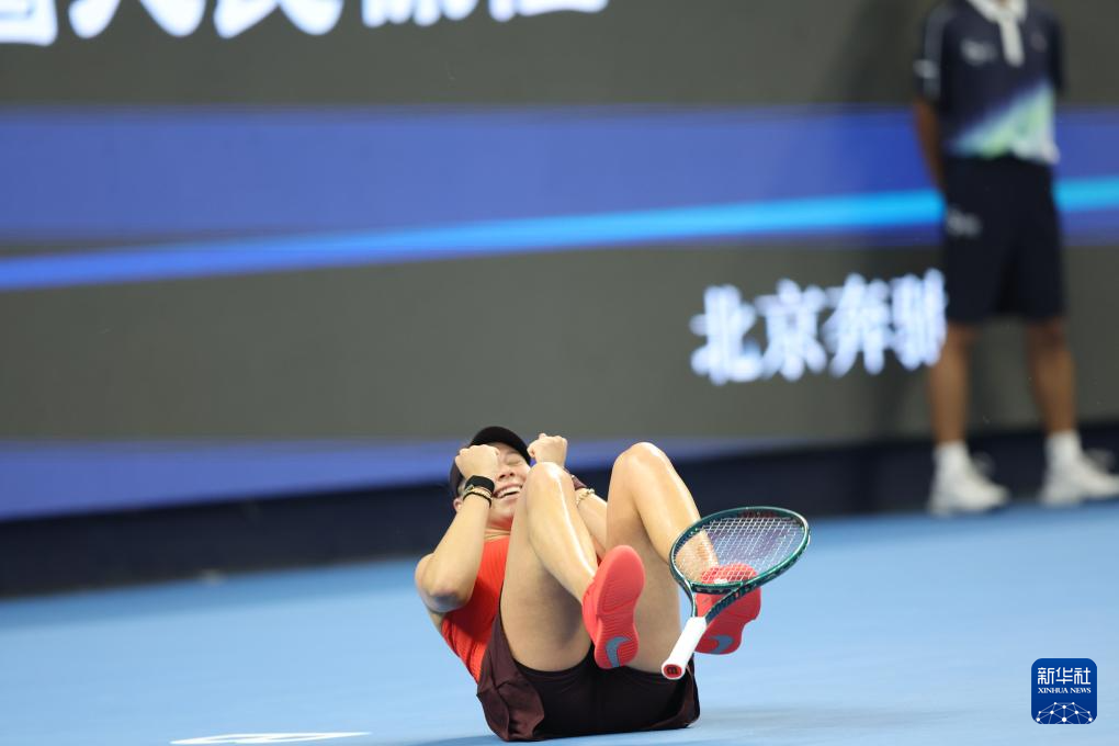 10月5日,阿尼西莫娃庆祝获胜。新华社记者 白雪飞 摄