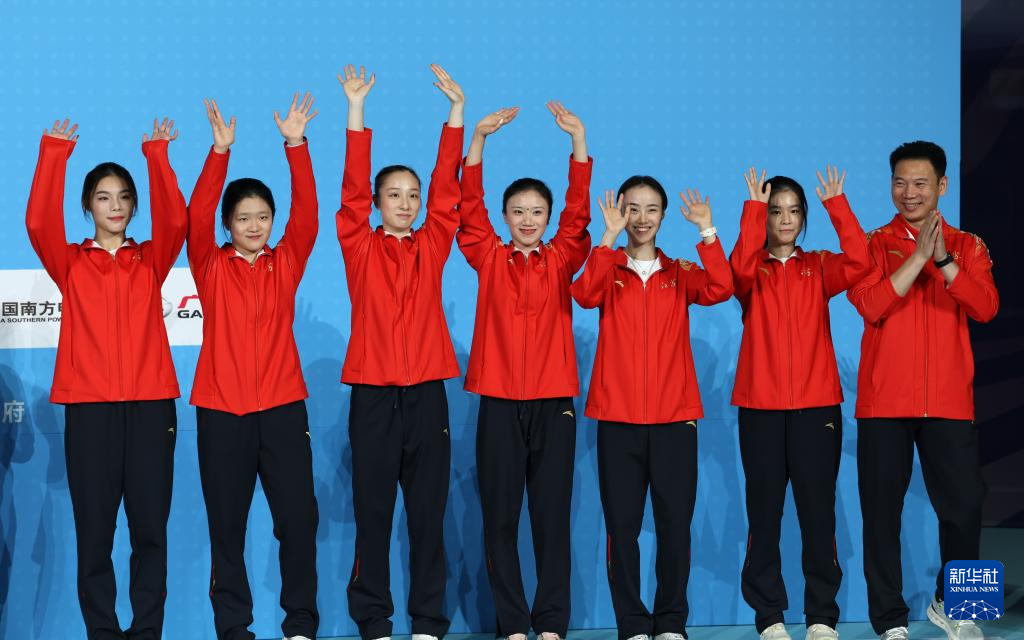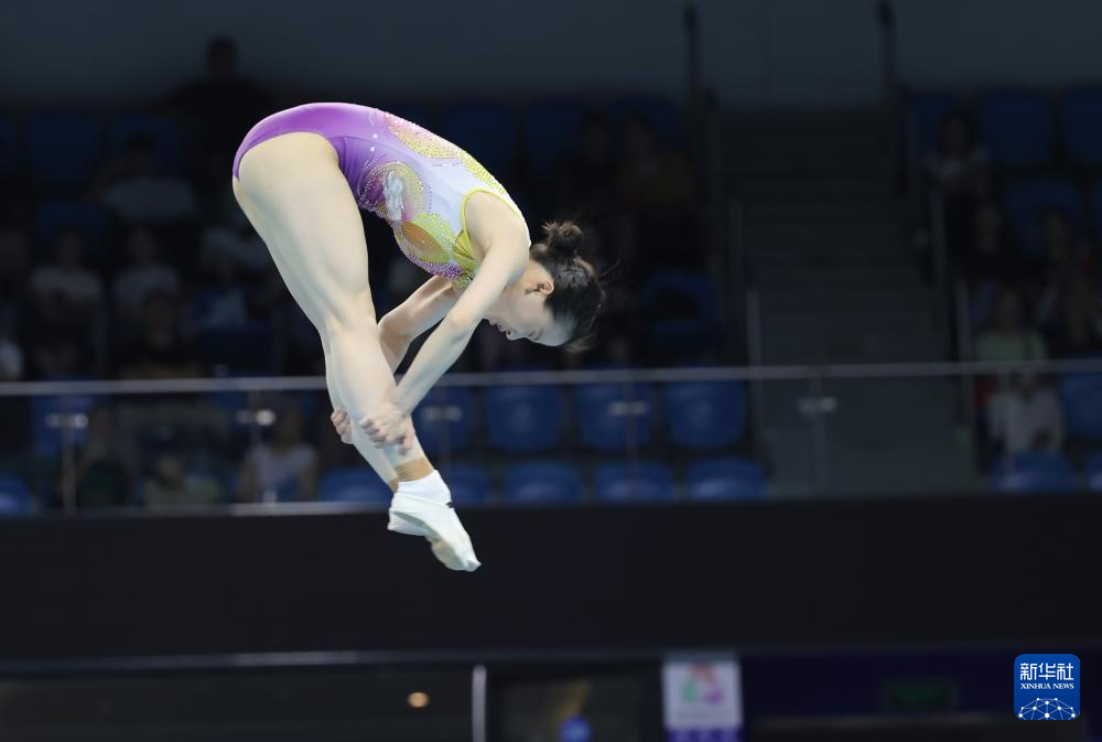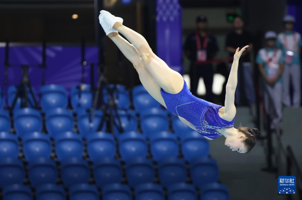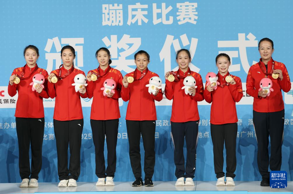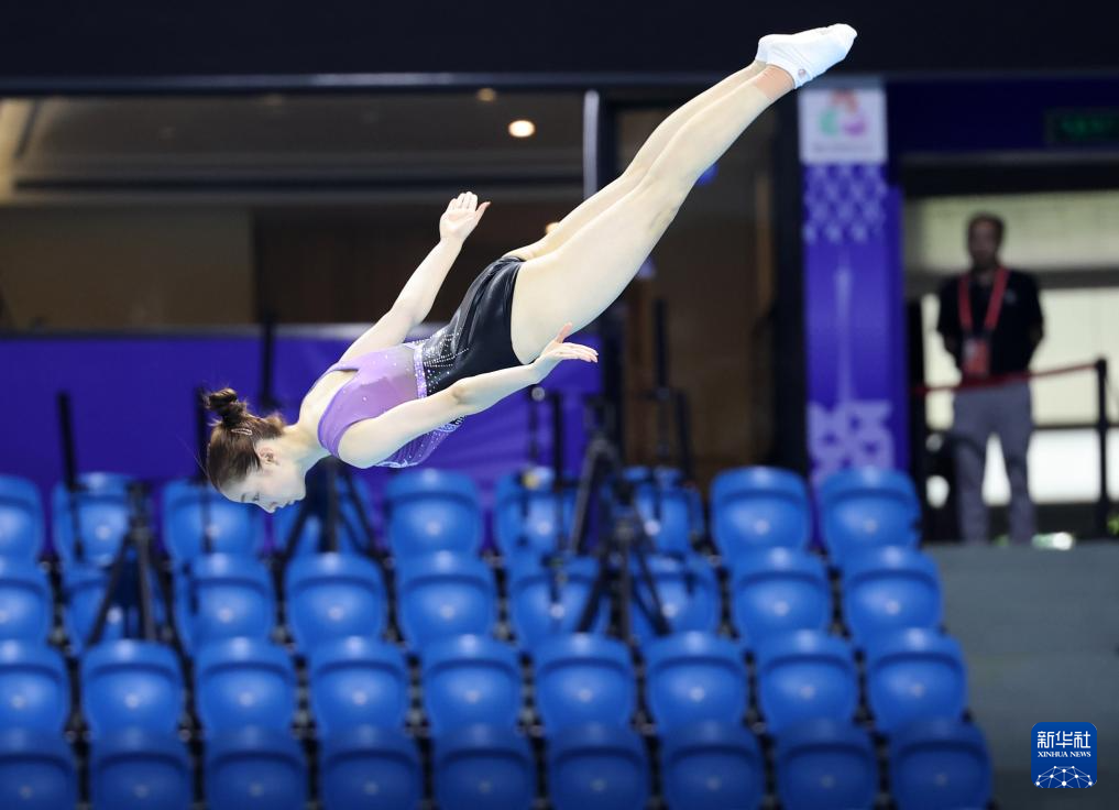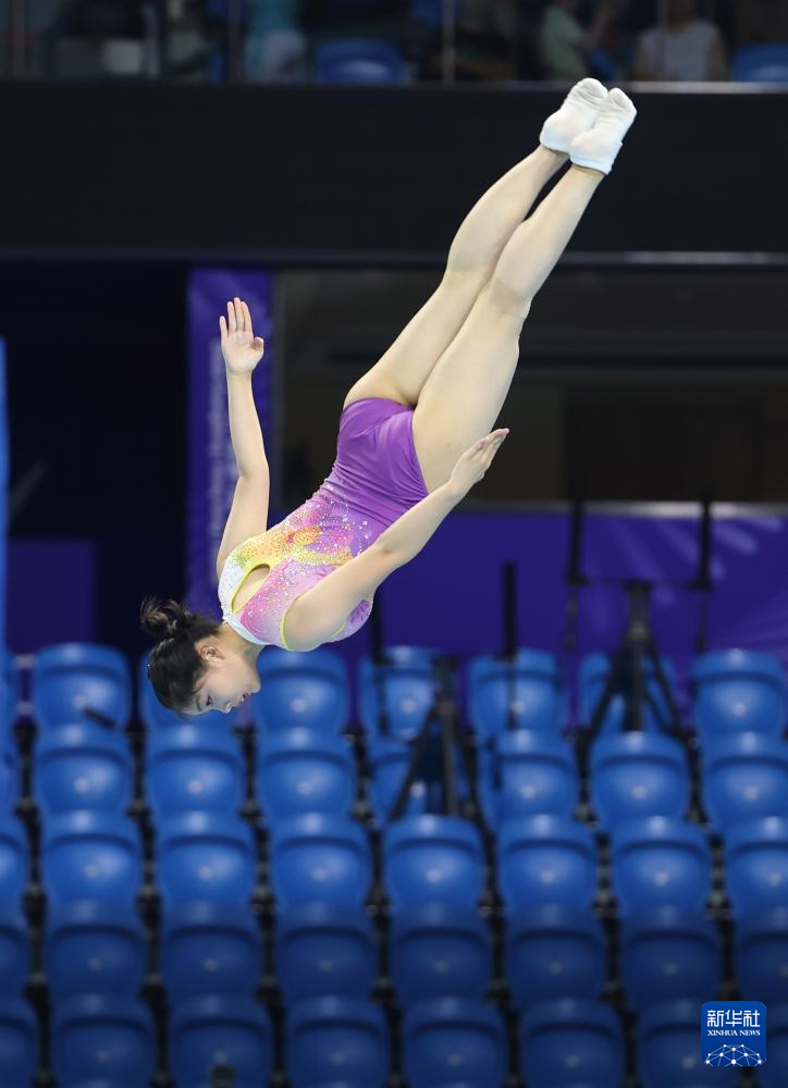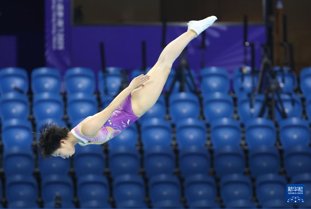 当日,第十五届全运会蹦床女子团体决赛在广州举行。