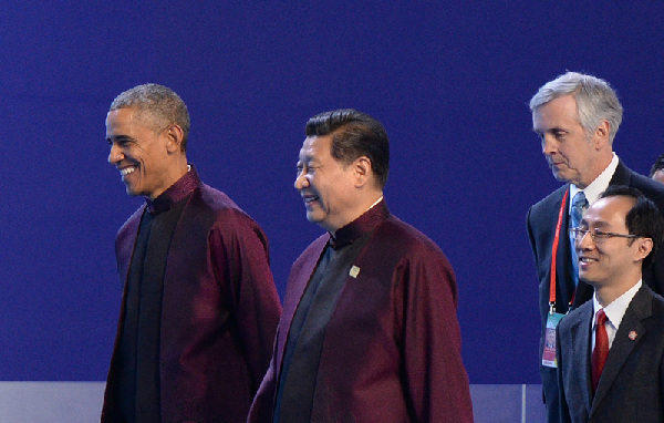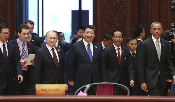 上午9時30分許,亞太經(jīng)合組織領(lǐng)導(dǎo)人非正式會議開始在雁棲湖舉行。