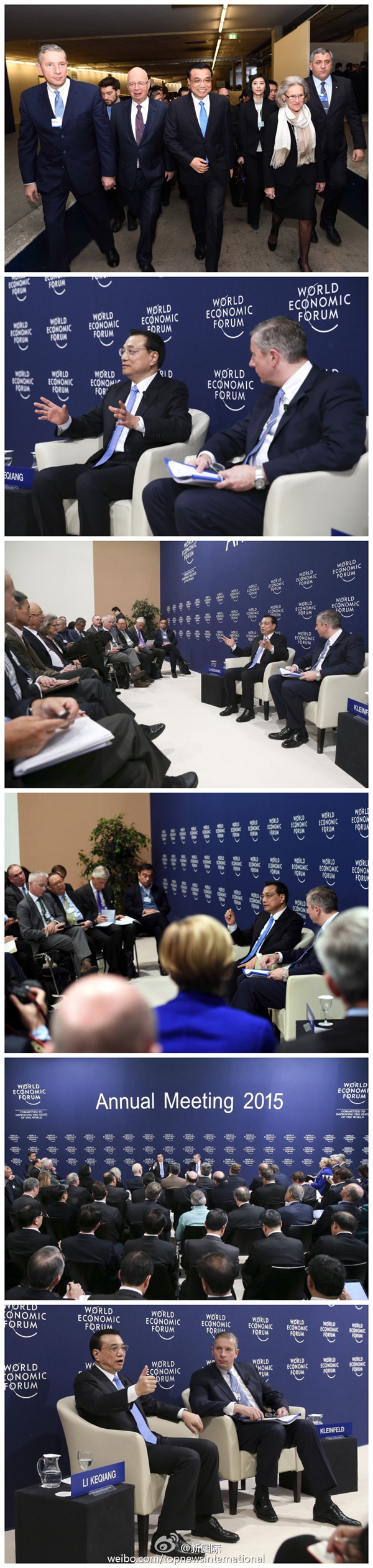 ????新華網(wǎng)北京1月21日電? 據(jù)新華社“新國際”微博報道,當(dāng)?shù)貢r間21日下午,李克強(qiáng)總理在瑞士達(dá)沃斯出席與世經(jīng)論壇工商理事會代表對話會,他詳細(xì)回答了多位代表關(guān)于中國改革發(fā)展問題的提問,現(xiàn)場多次爆發(fā)岀熱烈的掌聲。100多位全球工商界領(lǐng)袖與會。?