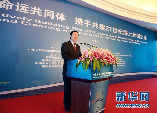 2月12日,中共中央政治局委員、中央書記處書記、中宣部部長劉奇葆出席在福建泉州召開的21世紀(jì)海上絲綢之路國際研討會,發(fā)表《揚(yáng)帆海上絲路 實(shí)現(xiàn)共贏發(fā)展》的主旨演講。新華社記者 姜克紅 攝