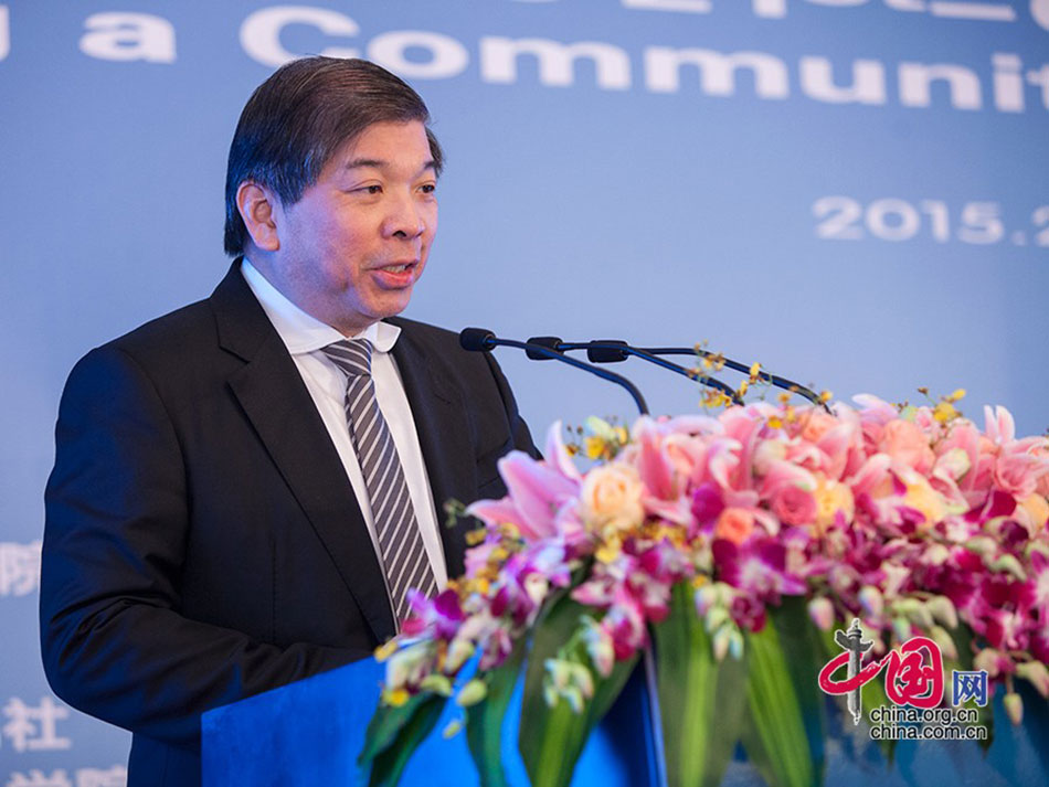 圖為新加坡工商聯(lián)合總會(huì)主席、 新加坡太平船務(wù)董事總經(jīng)理張松聲在“21世紀(jì)海上絲綢之路國(guó)際研討會(huì)”高峰論壇發(fā)表演講。中國(guó)網(wǎng)記者 鄭亮 攝