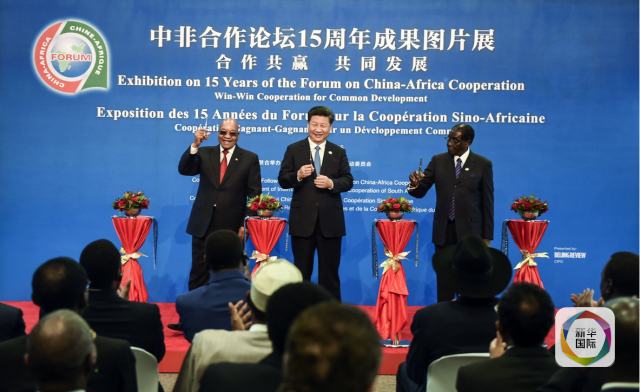12月4日,國(guó)家主席習(xí)近平在約翰內(nèi)斯堡出席中非合作論壇15周年成果圖片展開(kāi)幕式,同南非總統(tǒng)祖馬,非盟輪值主席、津巴布韋總統(tǒng)穆加貝一道為展覽剪彩。(新華社記者謝環(huán)馳攝)