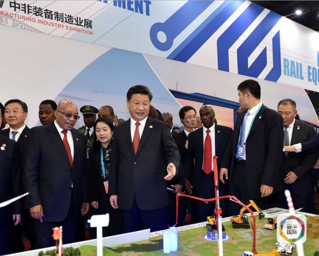 12月4日,國(guó)家主席習(xí)近平在約翰內(nèi)斯堡同南非總統(tǒng)祖馬,非盟輪值主席、津巴布韋總統(tǒng)穆加貝共同出席中非裝備制造業(yè)展開(kāi)幕式并為展覽剪彩。(新華社記者李濤攝)