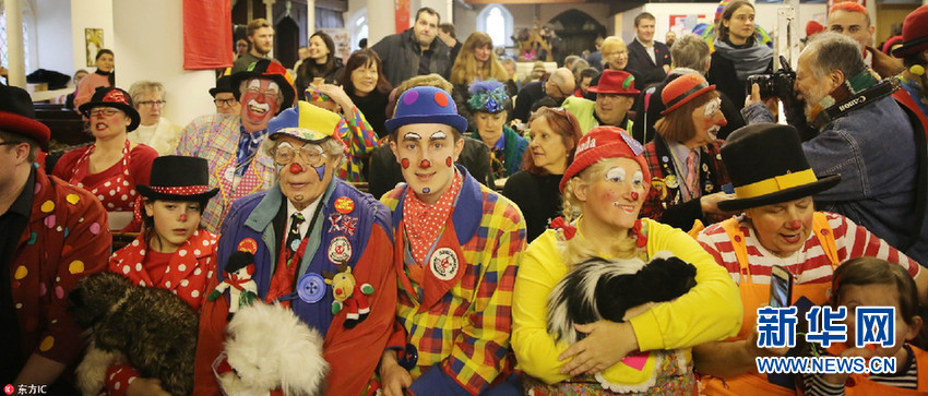 當(dāng)?shù)貢r(shí)間2月4日,英國倫敦,人們扮成小丑的模樣聚集在圣三一教堂,為英國“小丑之父”約瑟夫-格里馬爾迪(1778-1837)舉辦紀(jì)念會(huì)。(圖片來源:東方IC)