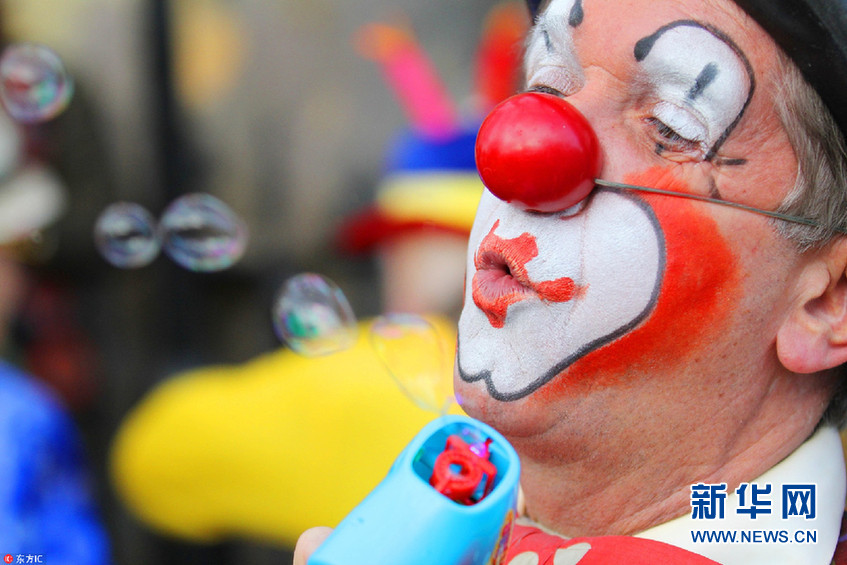 當(dāng)?shù)貢r間2月4日,英國倫敦,人們扮成小丑的模樣聚集在圣三一教堂,為英國“小丑之父”約瑟夫-格里馬爾迪(1778-1837)舉辦紀(jì)念會。(圖片來源:東方IC)
