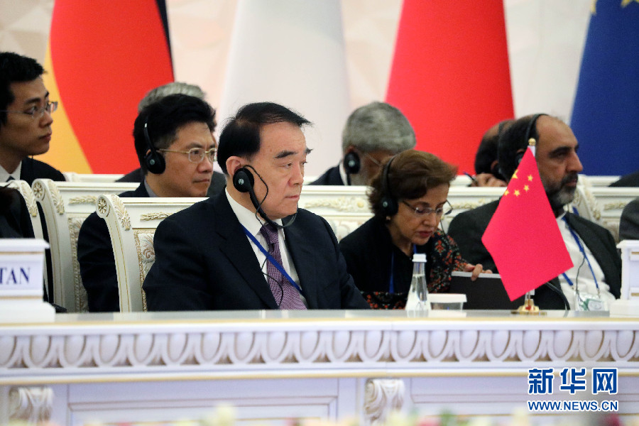 中國(guó)外交部副部長(zhǎng)李保東(前排左一)率團(tuán)參加會(huì)議。阿富汗問(wèn)題高級(jí)別會(huì)議27日在烏茲別克斯坦首都塔什干舉行。新華社記者周良攝