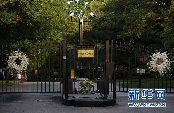 4月18日,鮮花擺放在美國(guó)前總統(tǒng)老布什和小布什位于美國(guó)休斯敦的住所大門(mén)前。新華社發(fā)(李怡今攝)